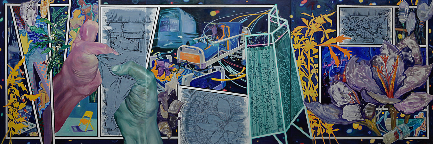 作品名称:《七日梦魇》 尺寸:150x450cm 材料:布面油画