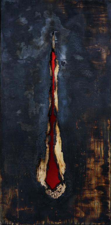 《烟花 贰》牛黎明 椴木板、、烫金布 200x100cm 2023