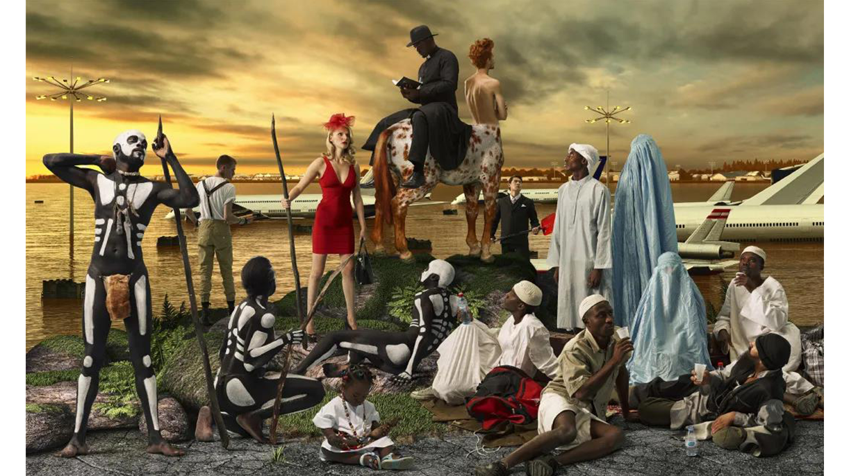 《颠倒世界》这部史诗般的剧作,其创作来源点是多重的,作品以西方中世纪版画为故事蓝本,又融合了文艺复兴、巴洛克以及新古典主义等艺术表现手法。作品中的人物关系与情景结构是艺术家精心组织、策划的,其中所涉及的艺术家关注的问题也是多方面的:全球与地域文化的交融碰撞、大众文化、生态问题等社会话题。为了带动观者进入作品,自我反思,艺术家将现实中的身份角色在作品中进行互换,原本理所当然的现实在置换后的视幻空间中被异化,由此引发并产生共鸣。