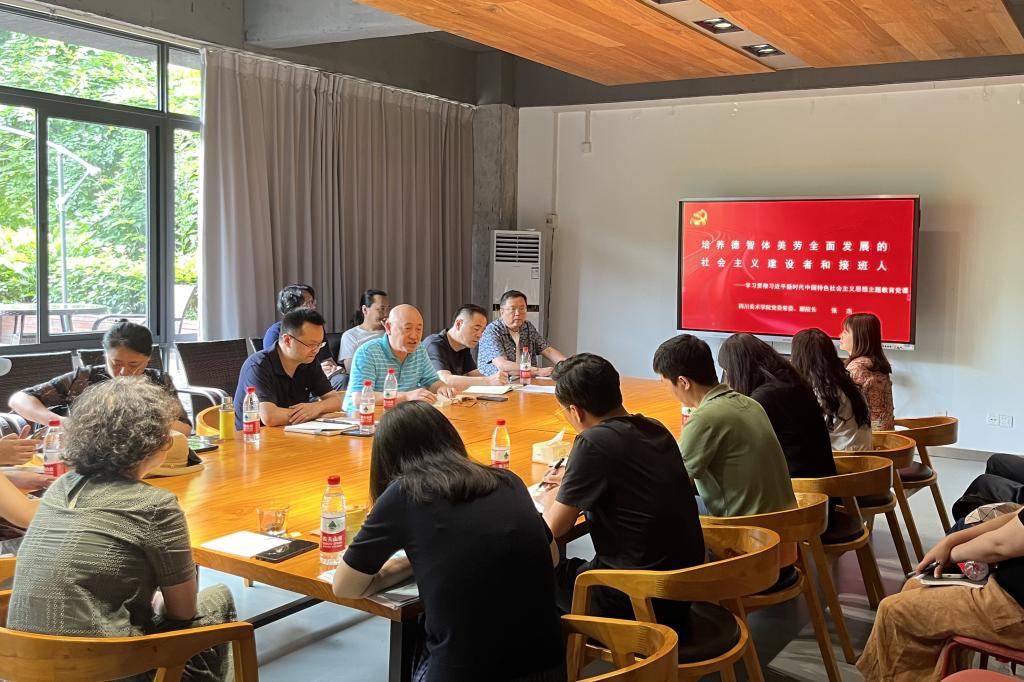 张杰以“培养德智体美劳全面发展的社会主义建设者和接班人”为主题,强调了“培养什么人”是教育的首要问题。我国是中国共产党领导的社会主义国家,这就决定了我们的教育必须把培养社会主义建设者和接班人作为根本任务,培养一代又一代拥护中国共产党领导和我国社会主义制度、立志为中国特色社会主义奋斗终身的有用人才。一是要在坚定理想信念上下功夫。艺术教育学院和实验艺术学院全体教职工,特别是一线教师、辅导员、行政人员要通过“正确引导和长期教育”,围绕“三全育人”,帮助学生树立坚定理想信念。二是要在厚植爱国主义情怀上下功夫。培养学生爱国主义情怀,围绕“思政+艺术”,要铸课程思政之“魂”,课程思政的对象是学生,要实现铸魂育人的目标,课程首先必须有“魂”,而一门课程是否有“魂”,关键在于教师是否有“魂”,也就是“让有信仰的人讲信仰”。三是要在加强品德修养上下功夫。培养学生的品德修养,要突出校园服务之“诚”,全体教职员工要以身示范,让学生时时刻刻感受到学院各个岗位的敬业精神和服务意识。要讲好传统文化之“蕴”,在做好人才培养的同时要深耕中华传统文化,从中找到培养学生品德修养的元素,塑造学生良好品德。四是要在增长知识见识上下功夫。要带领孩子们感受社会之“广”,开展社会实践,帮助学生进一步了解国情和民情,增加社会经验和阅历,锻炼实践能力,开阔视野,磨练自身品格和意志。五是要在培养奋斗精神上下功夫。艰苦奋斗的精神,是党不断取得胜利的法宝和重要精神力量,是党留给我们的宝贵红色基因,我们要向同学们展示奋斗之“功”、要激励学生享受拼搏之“趣”。六是要在增强综合素质上下功夫。增强学生综合素养,需要加强体育教育,让大家体验体育之“乐”、带领大家感受劳动之“美”,培育学生精益求精的工匠精神和爱岗敬业的劳动态度。