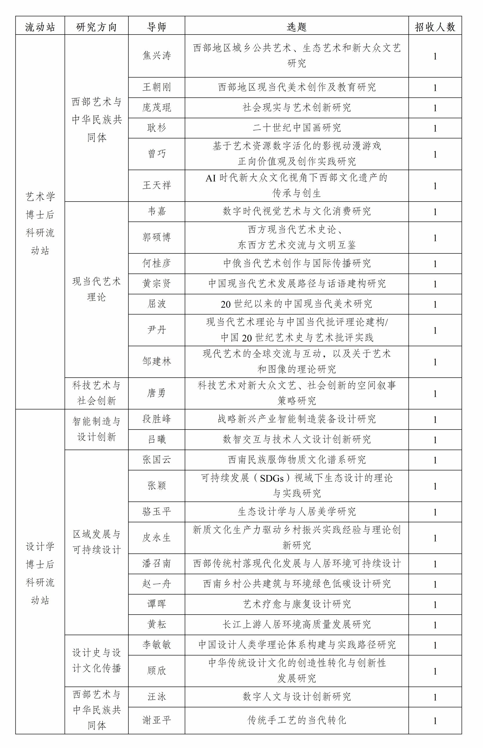 学校设有艺术学、设计学2个国家级博士后科研流动站,2026年春季面向海内外招收博士后研究人员。