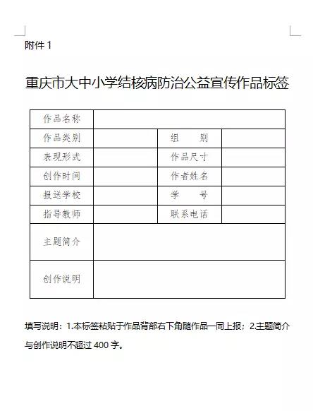 附件:1.重庆市大中小学结核病防治公益宣传作品标签