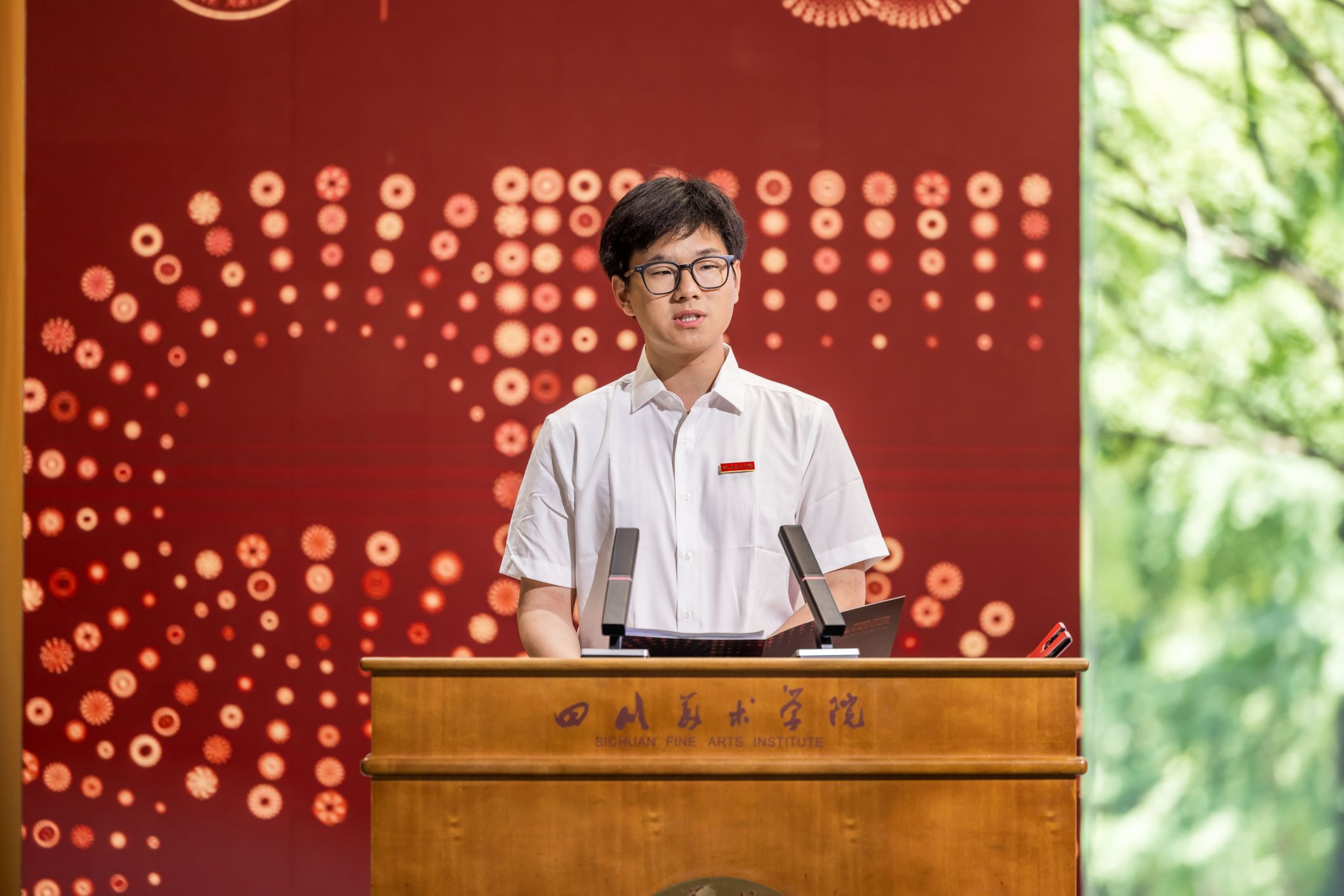 会上,章昊旻以“青春筑梦西部 初心照映党心”为主题,详细分享了投身基层的心路历程,介绍了基层工作情况。章昊旻表示进入大学后的一场讲座在他心中种下了投身基层的种子,大学四年的学习中他一直围绕“什么是中国设计?”“应当如何走一条不同于西方设计的中国设计道路?”两个命题不断探索和钻研,并通过暑期“三下乡”等社会实践活动深入社会、走进基层进行锻炼。2024年4月,他在支部组织生活中深受触动,向党支部书记表达了服务西部基层的强烈意愿,之后在老师的支持和帮助下顺利通过新疆招录计划。在新疆和田党校岗前培训期间填报志愿时,章昊旻填报了两个“最”:地区最西南边的中印边境乡镇和最东北部的沙漠腹地乡镇。最终,他选择了将青春绽放在塔克拉玛干沙漠腹地——安迪尔乡。