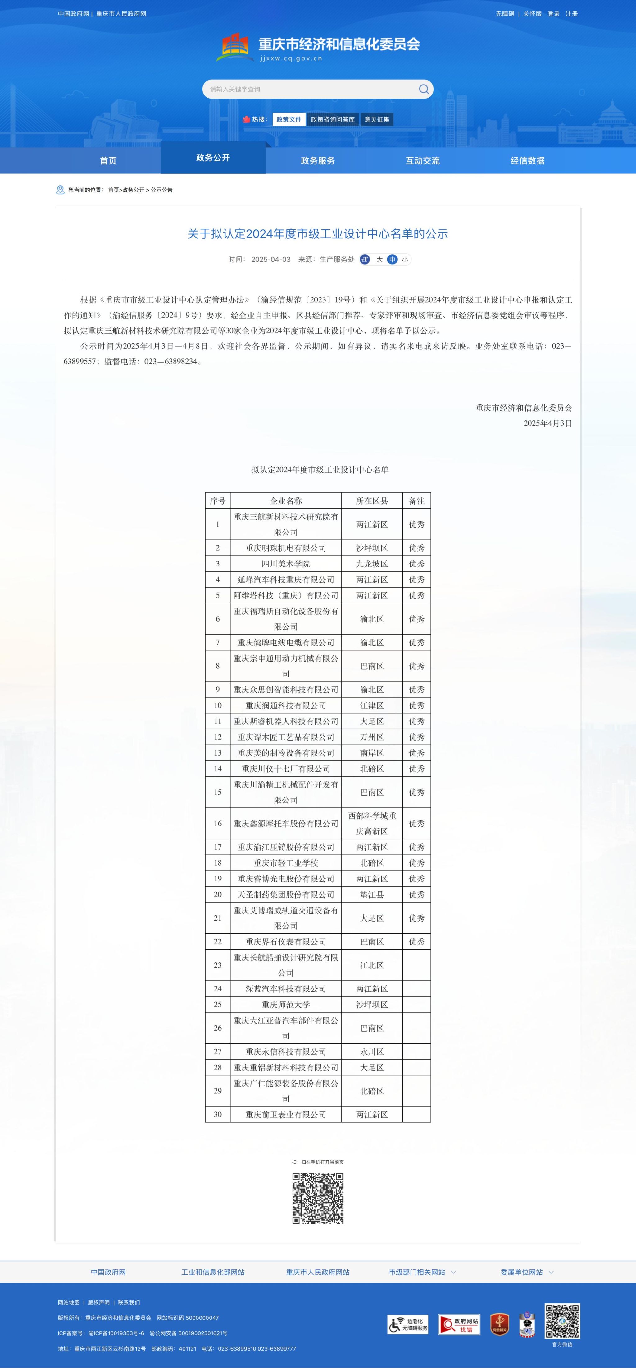 近日,重庆市经济和信息化委员会公布了2024年度市级工业设计中心名单,我校成功入选。