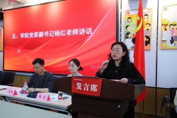 会上,杨红发表讲话。她首先对大会的顺利召开表示祝贺,并对上一届团总支的辛勤付出表示感谢。杨红对新成立的团委提出几点希望:要坚定理想信念,加强组织建设,围绕中心工作服务,积极服务学院发展大局。