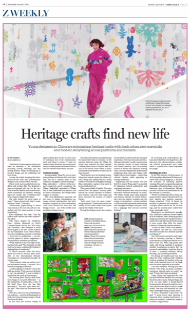 近日,《中国日报》国际版(China Daily)报道了四川美术学院设计学院王玺副教授及其团队的设计成果《多彩贵州·活力四射——村超、村BA文化形象设计》 ,赞誉团队为“有温度的非遗传播大使”。报道认为,团队的设计不仅精准捕捉了乡村体育盛事的激情,更深刻传递了中华民族传统文化的温情与厚度 。这不仅是对团队设计作品的认可,更是对四川美术学院长期坚持扎根中国大地、服务社会发展的艺术实践的高度肯定。