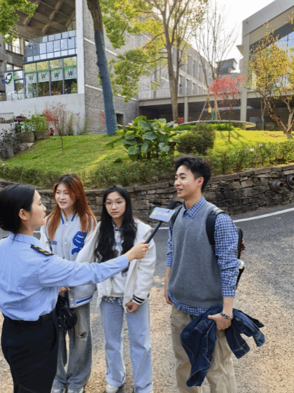 本次活动设置普法宣讲报告会、联合工作室工作推进会以及学生街采视频拍摄三大环节。普法宣讲报告会在学校5号报告厅举行,设计学院党委副书记杨红作开场致辞,执法人员以“行安我护”为主题,结合案例讲解交通安全知识,帮助学子识别隐患、掌握应对方法,后续普法宣传还延伸至校园,让法治理念融入日常。