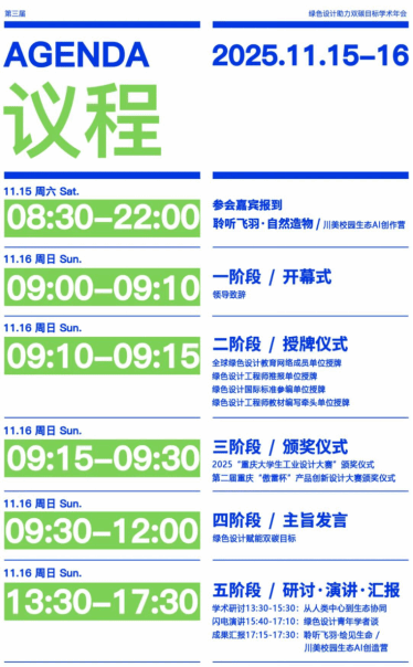 《“十五五”规划建议》提出,加快经济社会发展全面绿色转型,建设美丽中国。绿色设计是推进可持续发展的重要着力点,它既符合我国绿色发展理念,也是我国生态文明建设的重要手段。重庆自2023年加入联合国“创意城市网络”以来,设计产业蓬勃发展,“设计之都”建设成效显著,重庆正积极融入全球创意城市网络。为实现深化协同发展,推进成渝联动与“一区两群”协作,打造绿色产业集群,主动融入绿色“一带一路”建设,放大区域绿色发展合力,顺应国家“绿色化”的建设与发展目标,探索以生态优先、绿色发展为导向的成渝高质量发展新路子,四川美术学院、重庆工业设计协会于2021年、2023年连续举办两届“绿色设计助力双碳目标学术论坛”,旨在探讨用绿色设计推动“双碳”目标实现。结合实际,拟举办“第三届绿色设计助力双碳目标学术年会”。