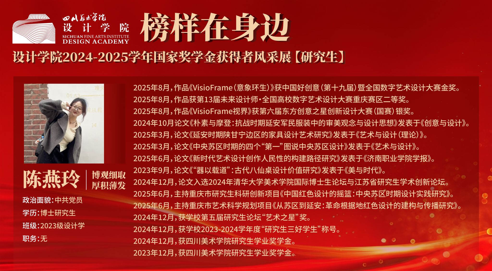 下一条:榜样在身边 | 设计学院2024-2025学年国家奖学金获得者风采展【本科生】