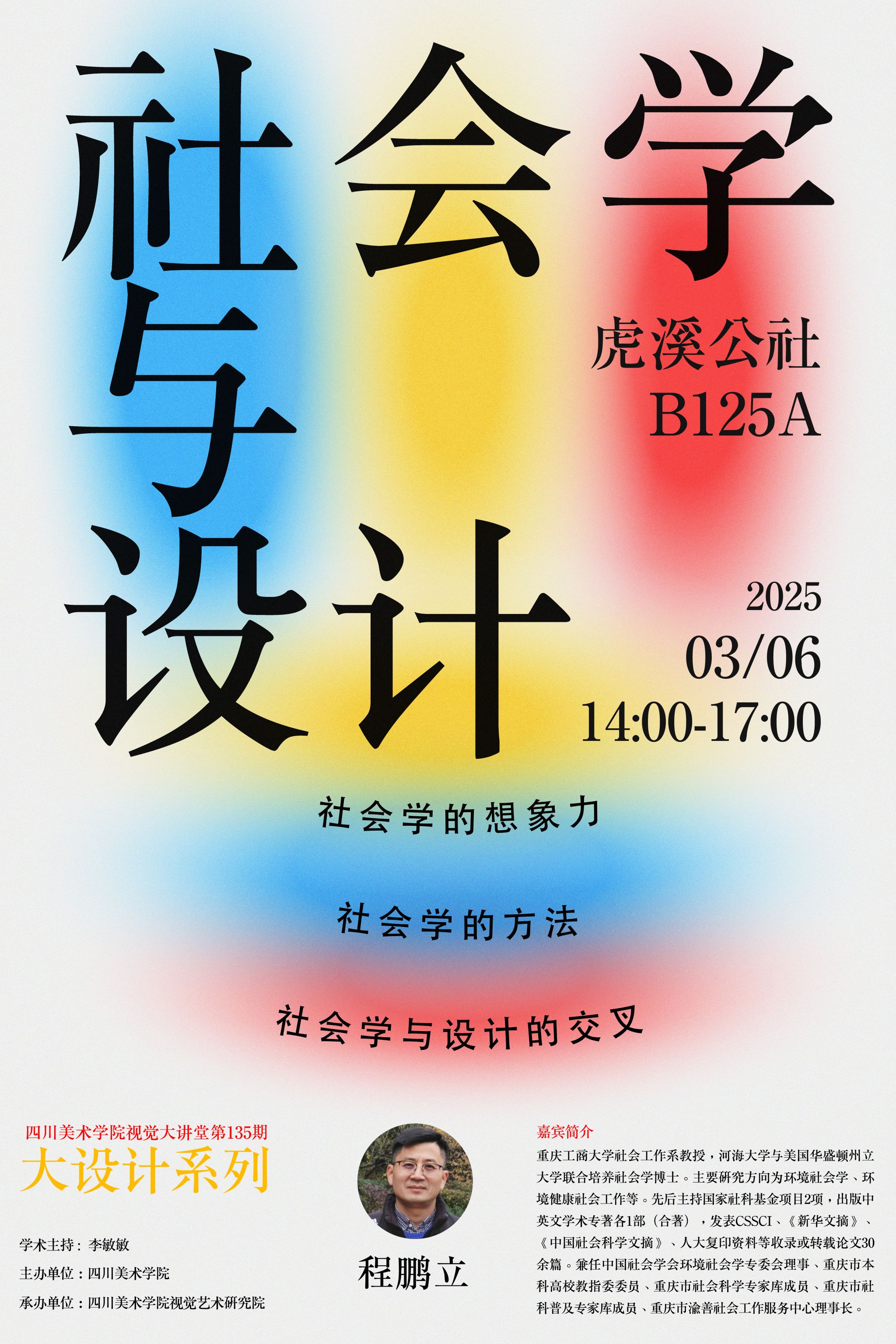 本讲座是设计与跨学科研究课程的一部分,主要介绍社会学的知识、方法、思维对设计学科的启发。本讲座包括三个小方面的主题:社会学的想象力、社会学的方法、社会学与设计的交叉。"社会学的想象力"一定会让设计师们的想象力更有穿透力。问卷调查、田野研究等社会研究方法是我们了解社会、人的社会行为的基本方法。运用这些方法,设计师才能真正把握设计对象的需求。让设计对象一起参与设计,也许社会学能给我们在思维、理论、方法方面的启发。