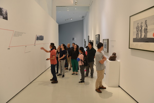 支部宣传委员陈刚首先结合工作实际,在学校美术馆“四川美术学院馆藏系列展”展厅现场,以展览作品为线索,以点带面,为支部全体党员主讲了题为“四川美术学院的艺术追求”的专题党课。通过回顾和学习我校发展、创作的相关历史,全体党员充分感受到了学校辉煌的发展历程,以及个人与学校兴衰荣辱的密切关系,增强了主人翁意识、责任意识与担当意识,对于学校第二次党代会的重大时代意义和自身的使命感都有了更深刻的理解。