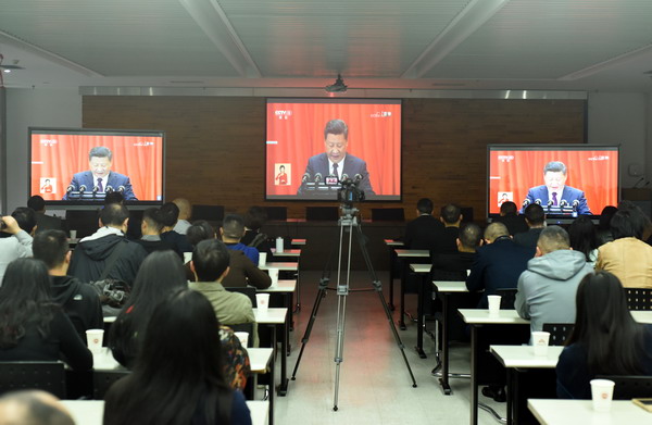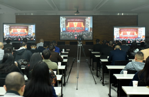 (学校组织领导干部和师生集中收看十九大开幕会直播)