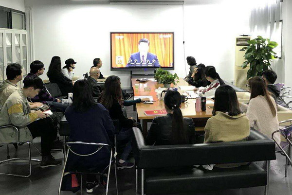 为深刻学习领会党的十九大精神,有效推进学习广覆盖,在全校迅速兴起学习十九大精神的热潮,学校于10月18日上午9点,组织校党政领导、全体中层领导干部、全体党务部门工作同志,在虎溪校区五会议室集中收看了中国共产党第十九次全国代表大会开幕会盛况,认真聆听了习近平总书记代表第十八届中央委员会向党的十九大所作的报告。