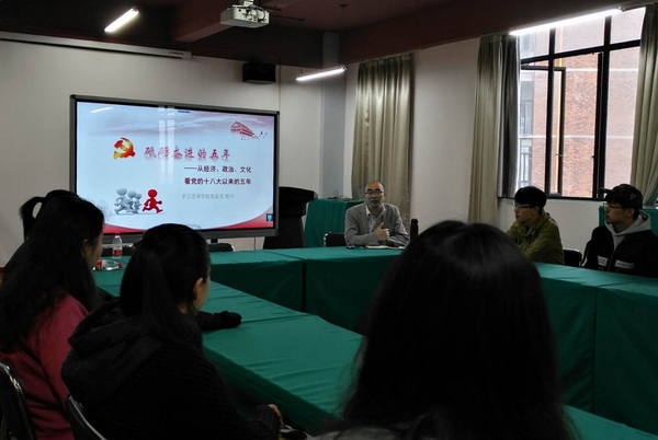 见面会前,手工艺术学院党政领导郑川同志、谢亚平同志分别以“砥砺奋进的五年——从政治、经济、文化看党的十八大以来的五年”“十九大关键词”为主题,分别给学生党支部同志与教师党支部同志上党课。本次专题党课不仅有利于师生员工鼓足士气、继续前行,也强化了师生党员的党性意识、党员意识,是一次深入学习、认真领会十九大精神的集体学习提高的党课。