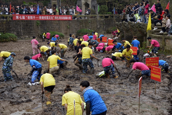 11月16日下午,四川美术学院工会在荷塘举办了第七届“老院子—荷塘校园文化”师生同采莲藕比赛。四川美术学院党委常委、纪委书记、工会主席苟欣文出席开幕式并给参赛队员们加油助威。