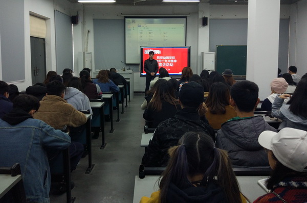 11月29日,学校党的十九大精神宣讲队成员、影视动画学院党总支书记柏在华同志,为影视动画学院全体本科学生党员及学生干部做了十九大精神专题宣讲。