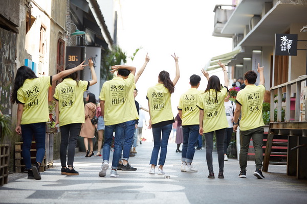 体验展在游人如织的二厂文创公园举办,通过体验流程设计,展陈方式形成集实物展示、公众试用、公众展示、公众传播于一体的互动体验系统,大大增强了展晌的公众参与性、体验趣味性、以及影响延展性。参观展览的公众,通过微信扫码付押金的方式获得展品的试穿、试用体验机会,在整个二厂文创公园自行选景自拍,按自愿原则在展区展示自己的照片或是进行网络传播,并可以向设计方提供自己理解的“主流价值关键词”,为下一次主题设计提供公众智慧。展览一经开始,即聚集了大量踊跃的参与公众,反响热烈。