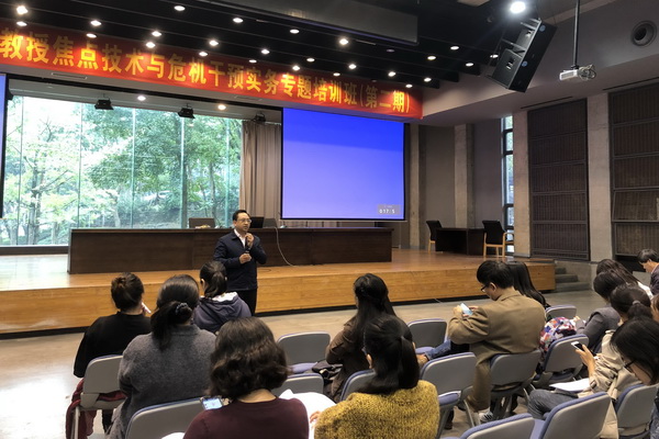 为提升我校教职工队伍开展大学生思想政治教育和心理健康教育工作能力,学校于10月12日至14日举办了重庆市高校马建青教授关于焦点技术与危机干预实务专题培训班(第二期)。我校教师工作部、学生工作部共同组织本校学工系统同志及部分青年教师、行政人员共计108人参与了培训。培训持续两天,主要内容为心理咨询焦点技术以及高校心理危机干预实务。