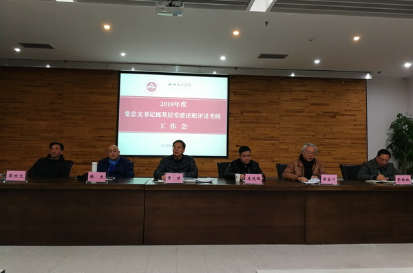 12月19日下午2点,学校在五会议室召开2018年度党总支书记基层党建述职评议考核工作会。学校党政领导黄政、庞茂琨、张杰、侯宝川、苟欣文、彭林权出席会议。全体党委委员、纪委委员、中层领导干部、党支部书记、辅导员、党委各部门工作人员、“两代表一委员”和工会执委会成员参会。党委书记黄政主持会议。