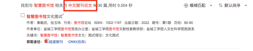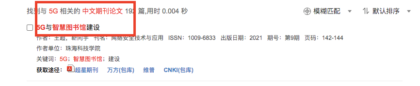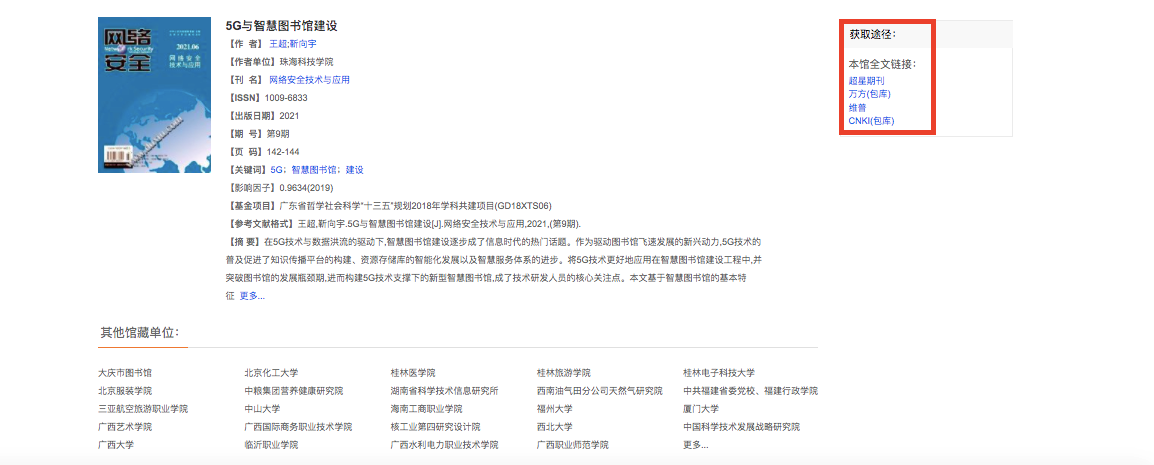显示搜索结果文献相关信息和获取途径。