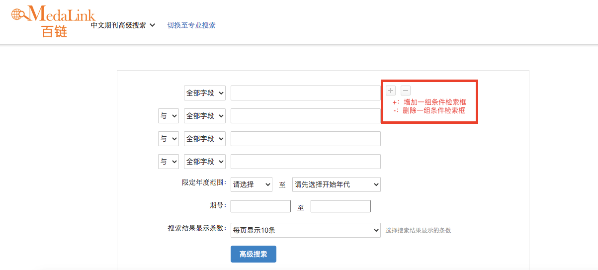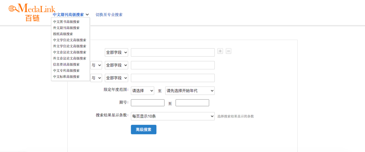 高级检索页面如下: