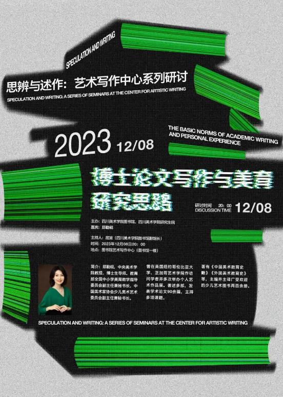 2023年12月8日晚上8点,由四川美术学院图书馆、四川美术学院研究生院联合主办的“思辨与述作·艺术写作中心系列研讨”系列活动之第六讲“博士论文写作与美育研究思路”在大学城虎溪校区逸夫图书馆一楼会议室开展。本次研讨会邀请中央美术学院教授、博士生导师郑勤砚主讲,由四川美术学院图书馆副馆长屈波主持,四川美术学院图书馆馆长杨吟兵出席,各级博士研究生和硕士研究生同学积极参与。