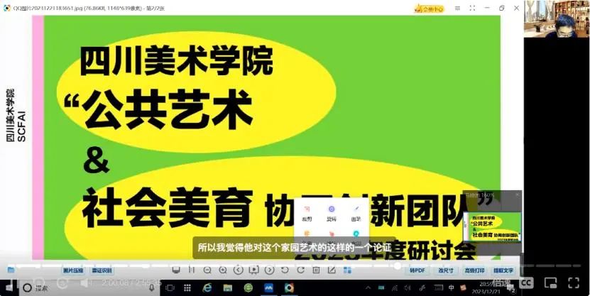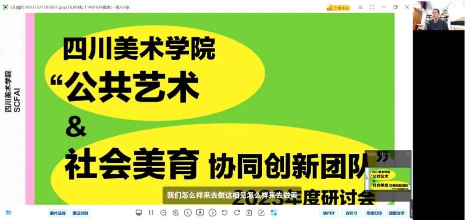 在将近三个小时的精彩报告和热烈研讨后,研讨会圆满结束。本次研讨会既是“公共艺术与社会美育协同创新团队”一年来工作的回顾总结,也是一场思想的盛宴。通过团队不断的实践和探索,在新的一年里,团队将持续深入的展开公共艺术与社会美育实践和研究,坚持理论创新与实践创新,带领川美学子参与到美育建设行动中来。