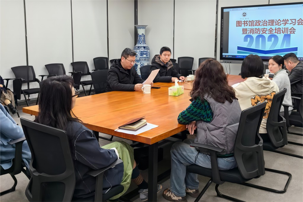 会议分为政治理论学习、学校会议内容传达、消防安全培训三个部分。首先,杨吟兵就习近平总书记在中共中央政治局第十一次集体学习上的重要讲话精神进行导学,重点谈到在充分融合科学技术的基础上,2024年智慧图书馆建设工作的推进将为创新服务模式、优化资源建设、助力产学研合作平台搭建持续提供动能,积极助推学校高质量发展。