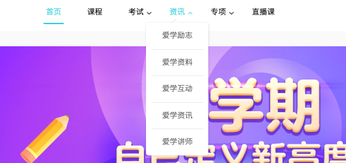 资讯板块分为:爱学励志、爱学资料、爱学互动、爱学资讯以及爱学讲师。