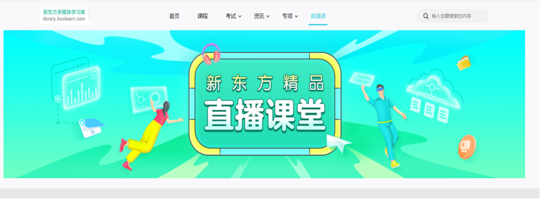 首页顶端你可以看到直播课的入口,点击进入可查询多媒体学习库精品直播课,涵盖国内外考试辅导、外语学习指导等,在线互动、直播回放,满足不同学习时间需求。