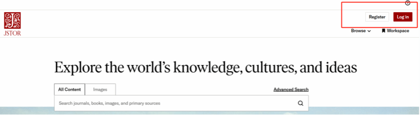 1.注册/登录账号:注册/登录个人账号后,用户可以使用“My JSTOR”服务,享受个人书目管理、书目输出、检索策略保存等个性化功能。