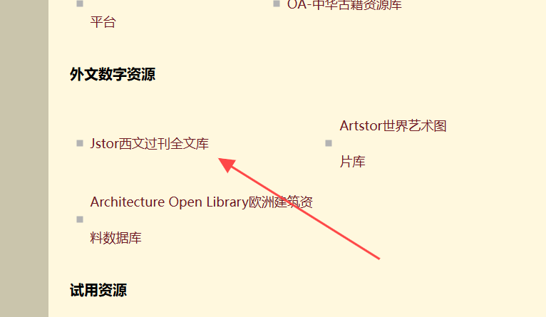 第二步:进入四川美术学院图书馆,选择Jstor西文过刊全文库