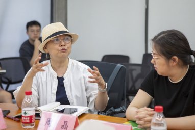 在自由讨论环节,图书馆的老师们积极参与。其中秦绍蓉老师提出:“社会美育如何有效转化为家庭美育?”引发热烈探讨。屈波老师回应称,如果有合适的机会将邀请相关专家分享家庭美育的实践经验,并透露有意推动整合馆内丰富的绘本资源,打造“绘本美育工作站”,开展家长与儿童共学活动。李颖老师进一步建议,可基于绘本开展创意写作、角色扮演等延伸活动,增强亲子互动与美育效果。
