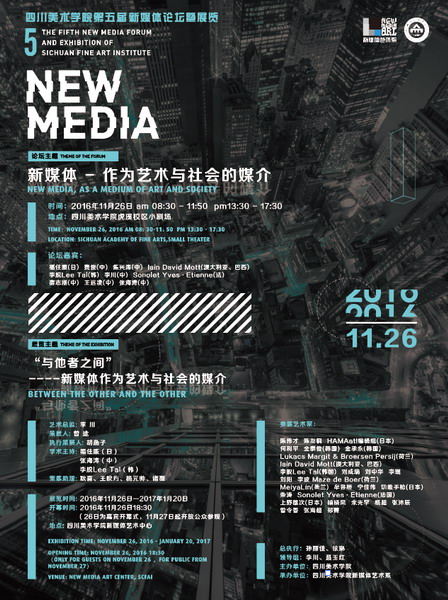 11月26日,第五届新媒体论坛暨展览在我校新媒体艺术系举行,来自中国、日本、韩国、荷兰、澳大利亚、巴西、法国的艺术家们围绕“新媒体——作为艺术与社会的媒介”主题进行了深入研讨。同时举行了以《与他者之间》为主题的展览,30位活跃于世界各地的艺术家的作品在我校虎溪校区新媒体艺术中心展出。我校庞茂琨校长出席了论坛暨展览开幕式。