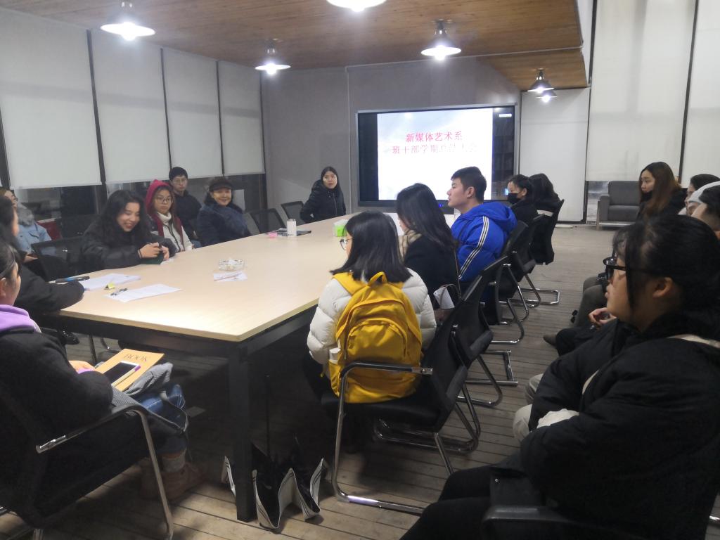 1月9日上午11点,新媒体艺术系召开期末全系班干部大会,系党总支书记聂玉红老师、两位辅导员以及全系各年级班干部参加了大会。