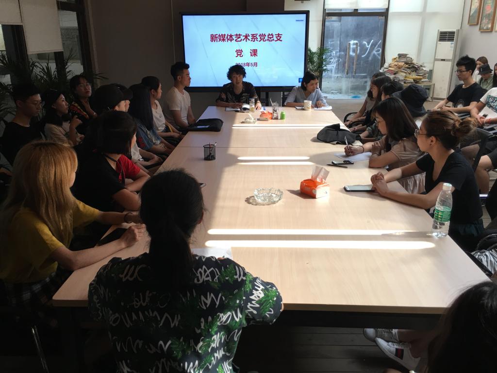 5月16日下午4:50分,新媒体艺术系党总支书记聂玉红为学生党员、学生干部上党课,学习习近平在纪念马克思诞辰200周年大会上的讲话精神。