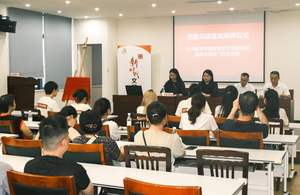 7月16日,实验艺术学院党委与璧山区碧泉街道天门社区党委党建共建基地揭牌仪式在天门社区党群服务中心会议室举行。璧山区璧泉街道党工委委员、纪工委书记曹立,璧山区璧泉街道天门社区党委书记严勇,实验艺术学院党委书记吴倩、副书记蒋智丽以及师生代表出席。