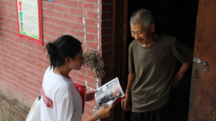 三河村党支部书记梁歆韵对实验艺术学院一行表示热烈欢迎。实践团队同梁歆韵及村委会工作人员一起深入三河村内部,进行人居环境宣传、整治活动。大家跋山涉水,走过小桥、庭院和山路,帮助村民正确摆放垃圾桶的位置;给村里的老人、小孩讲述党的历史和革命故事;去每家每户宣传庭院“三不见”:不见生活垃圾,不见厨余垃圾,不见建筑垃圾。同学们在社会实践课堂中受教育、长才干、作贡献,坚定信念听党话、跟党走,以实际行动迎接党的二十大胜利召开。