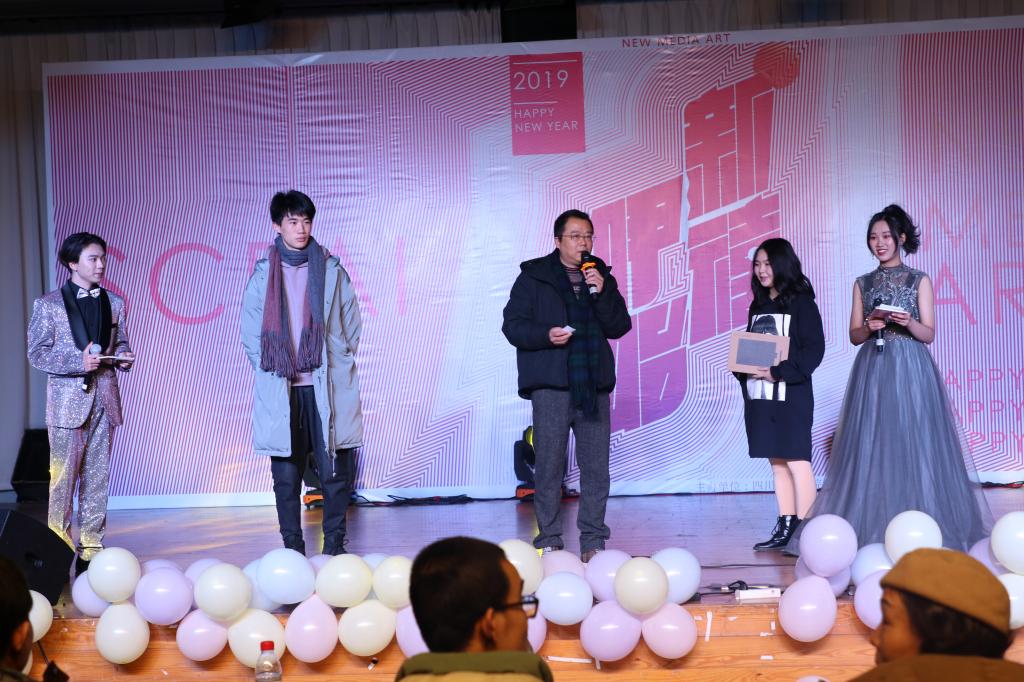 2018年12月28晚,新媒体艺术系元旦晚会在师生同台献艺的高潮中圆满结束。总支书记聂玉红在晚会致辞上说,这既是以新媒体艺术系的名义举办的最后一个元旦晚会,又是开启实验艺术学院新征程的开始。
