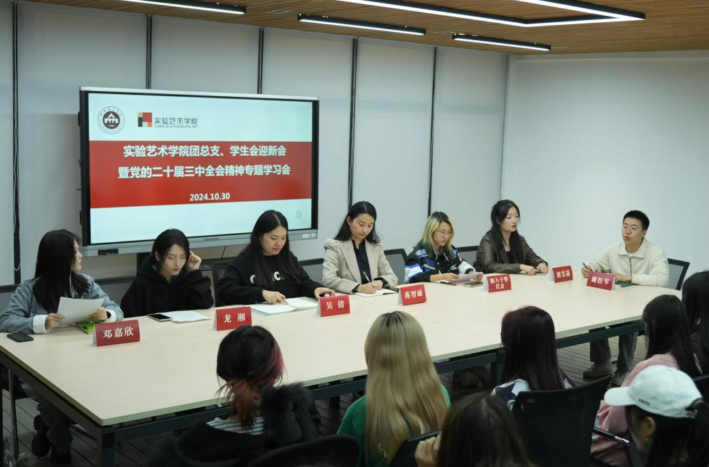 10月30日,实验艺术学院团总支、学生会召开了党的二十届三中全会精神专题学习会。学院党委书记吴倩、党委副书记蒋智丽及全体团总支、学生会成员参会。