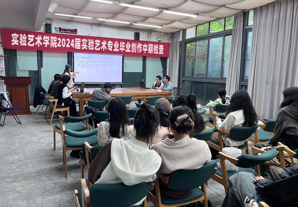4月29日上午,实验艺术学院对2024届实验艺术专业、摄影专业的本科生毕业创作进行中期检查。学院院长李川、副院长曾令香及2020级毕业创作全体师生参加检查。