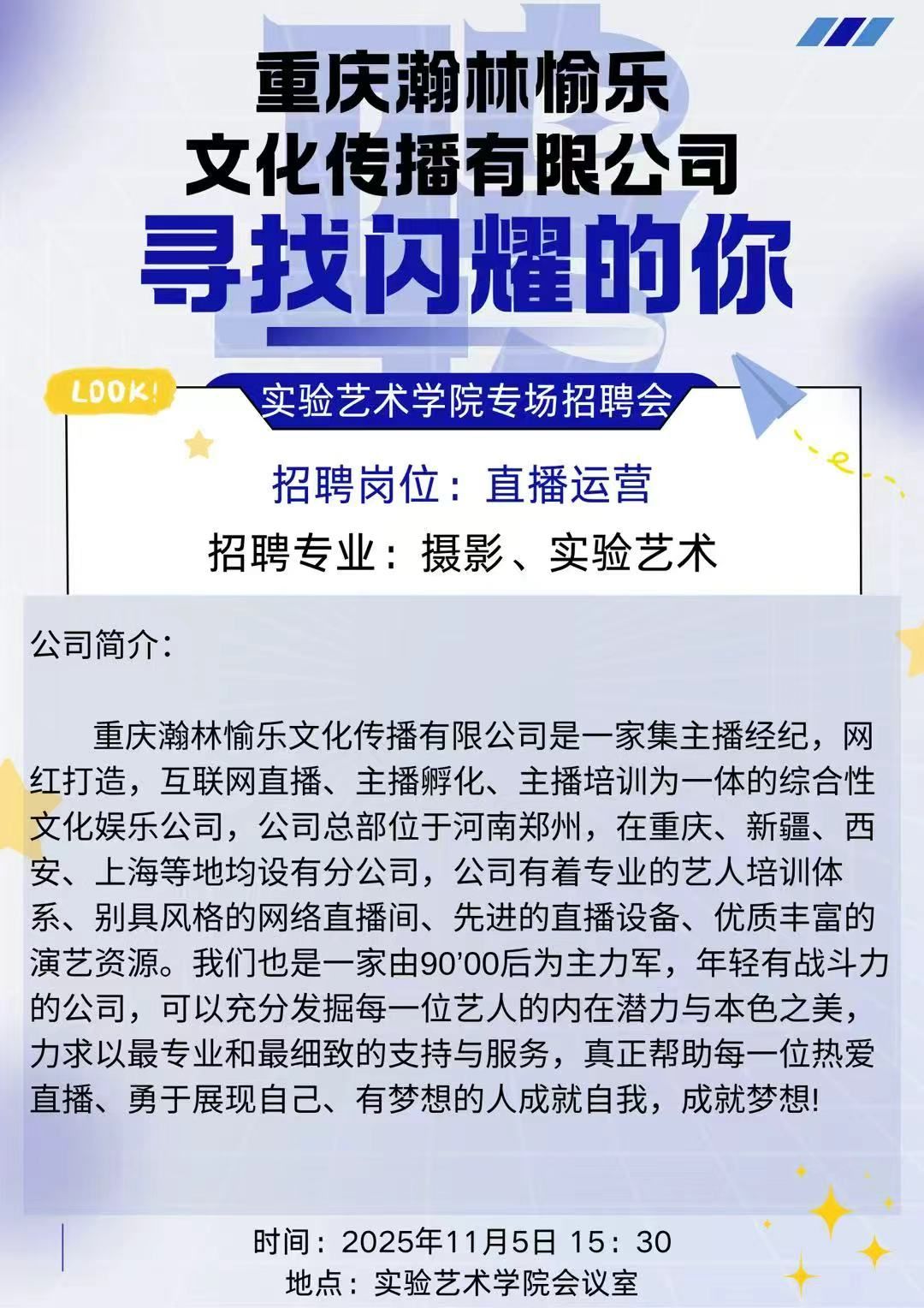 下一条:寻找闪耀的你-实验艺术学院专场招聘会——重庆艾思教育咨询有限公司