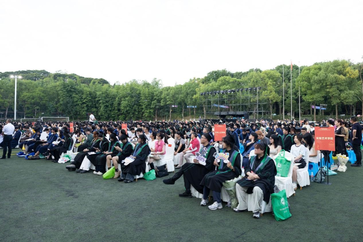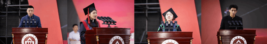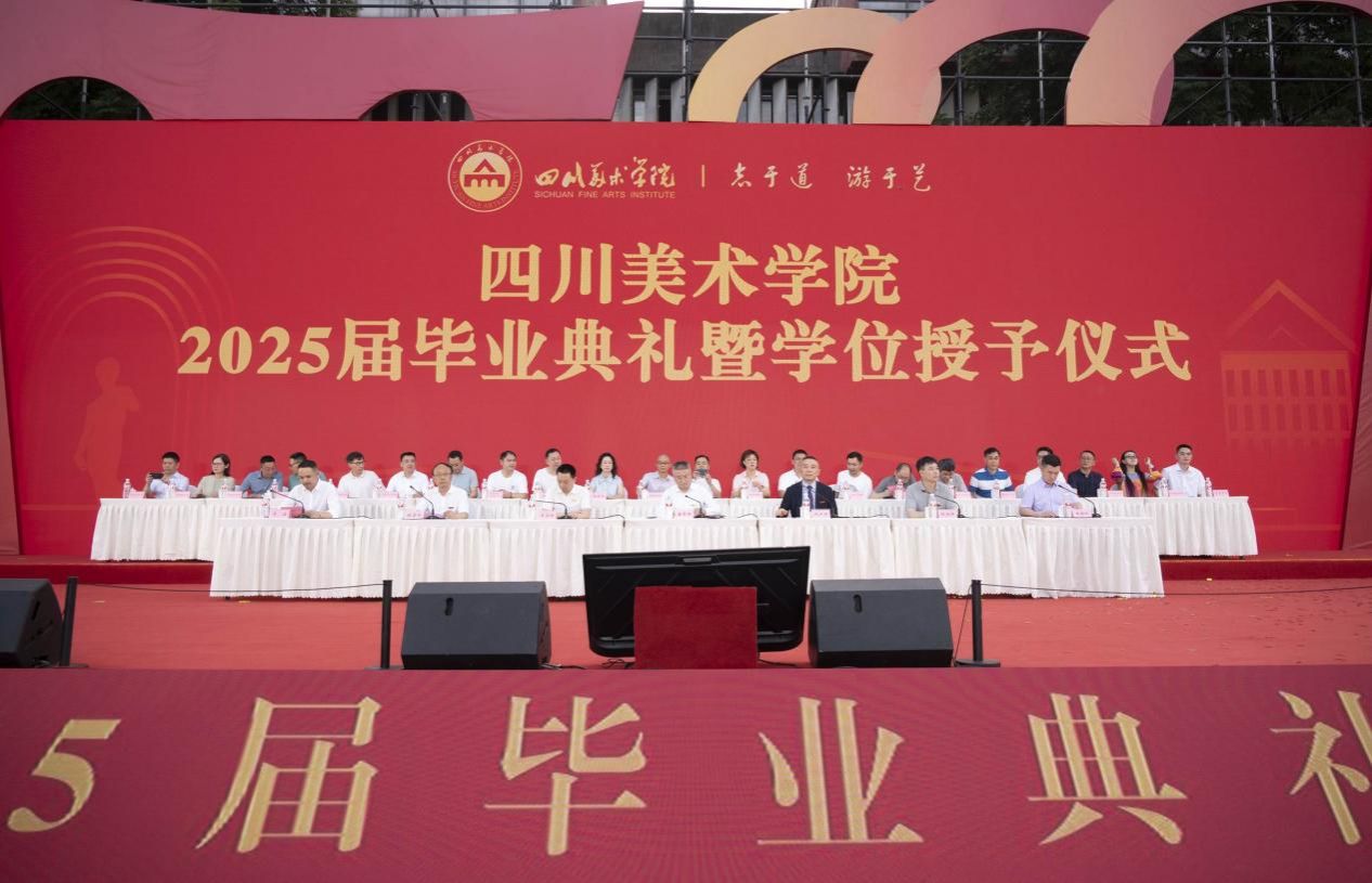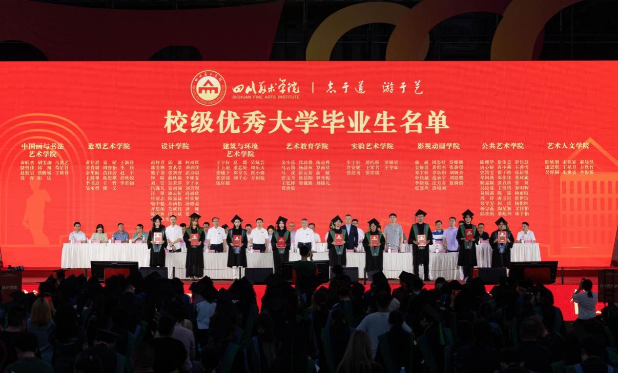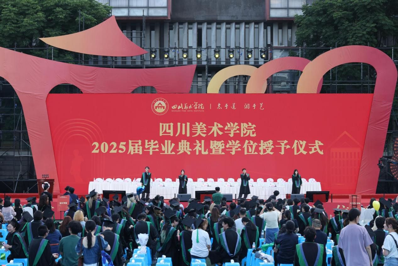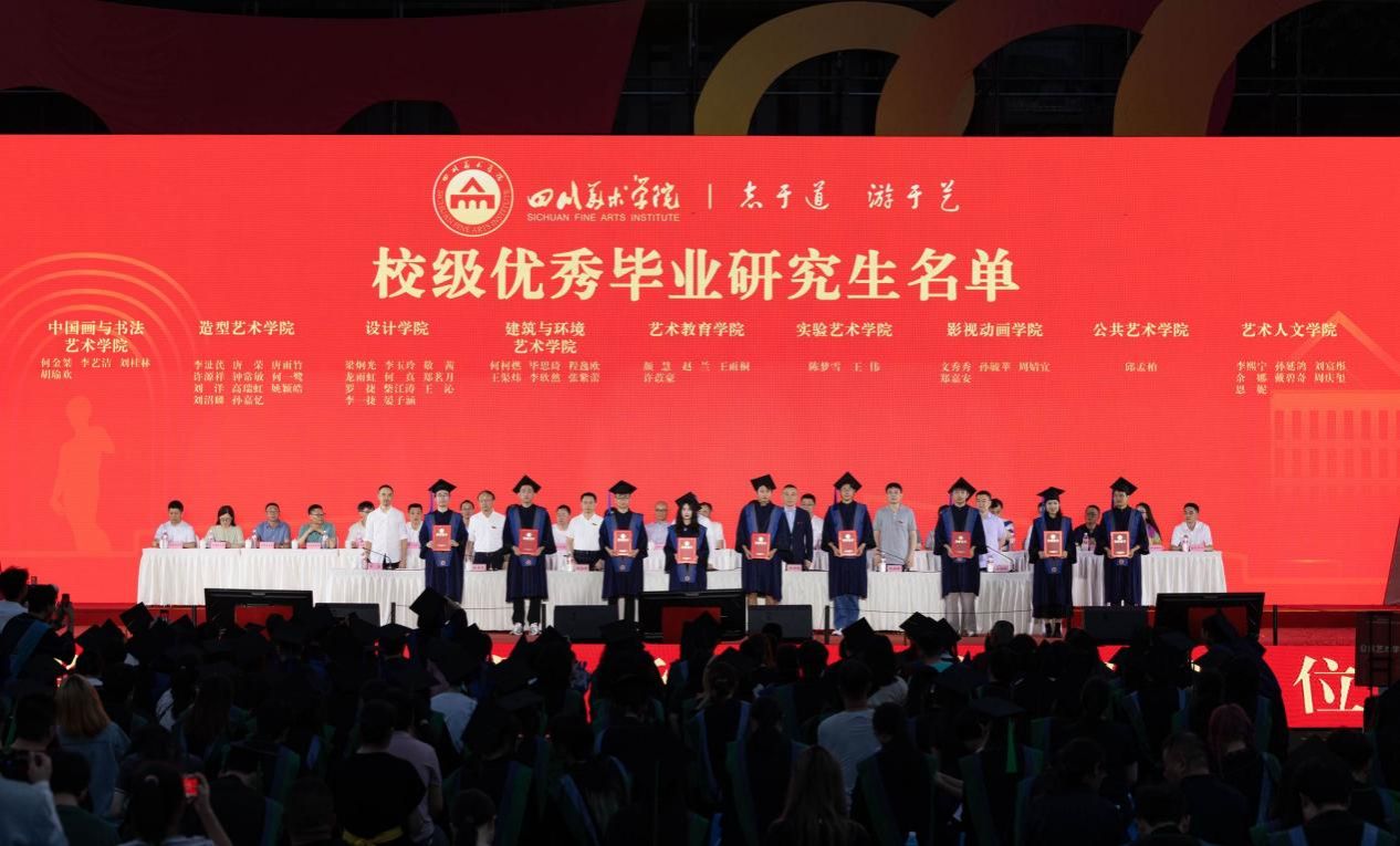 教师代表、设计学院老师任宏伟希望毕业生们永葆对艺术的热爱与执着,在未来的日子里,不断探索、勇于创新,用思想的“艺”和手中的“术”,描绘出属于自己的精彩人生。毕业生代表、造型艺术学院博士毕业研究生孙迎霞谈到,作为我校培养的首批博士毕业生,诚挚呼吁更多有志于学术研究的青年加入,大家共同为川美“双一流”建设、高质量发展贡献力量。本科毕业生代表陶星颖即将成为一名西部计划志愿者,临别之际她表达了对母校的感恩与祝福,表示将勇敢坚毅地扎根基层,服务人民、奉献社会,把青春的答卷写在壮丽的山水间,实现艺术的真正价值。在校生代表、艺术人文学院2024级学生邱子源感谢了学长学姐对大家学习生活上的帮助,愿他们在人生新征途上心怀美好、精力充沛,在时代潮流中乘风破浪、鹰击长空。