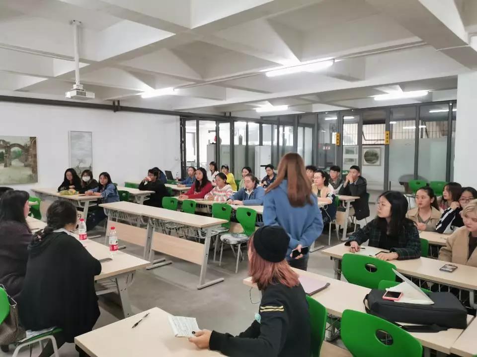 随后,由王玥向全体成员介绍大学生教育管理中心。大学生教育管理中心成立于2018年7月,是由四川美术学院学生处负责统筹指导的学生组织,工作内容主要为,大学生思想政治教育、学生日常管理、心理健康教育、创业就业指导,面向全校学生开展相关主题的活动策划及对外宣传活动,下设心理导航部、创业就业指导部、宣传部。