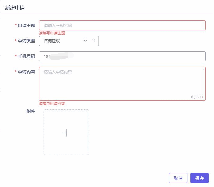 填写申请主题、申请类型、联系方式(带*必填哦),详细描述需求,并上传清晰附件。确认无误后,一键提交!
