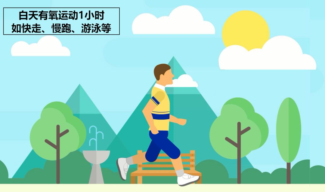 白天运动可帮助机体增强抵抗力、改善夜间睡眠质量,使深睡眠增多,提高睡眠效率。但在睡觉之前不建议做过量的运动,睡前剧烈运动使人体交感神经兴奋,心率加快,导致入睡困难。建议同学们晚上8点之后不要做剧烈运动,可以适当选择一些舒缓运动。