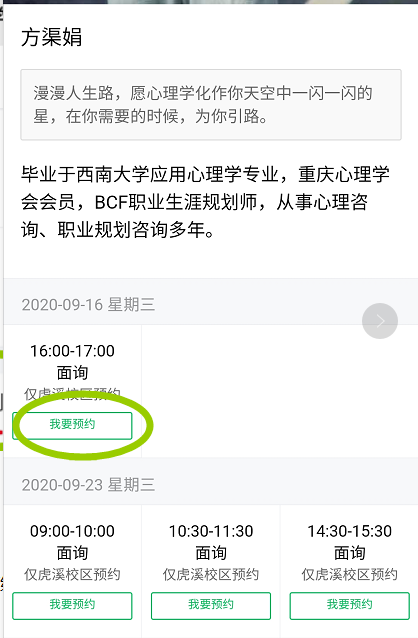 1.预约界面有咨询师的详细介绍,请自行选择。