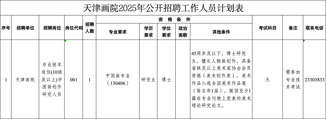 报名时间: 2025年10月22日9:00至10月29日17:00报名方式:考生可将简历及附件材料以“姓名+应聘单位+岗位”方式命名(如:张三+天津画院+美术创作),发送至指定邮箱tjhybgs@sina.com。