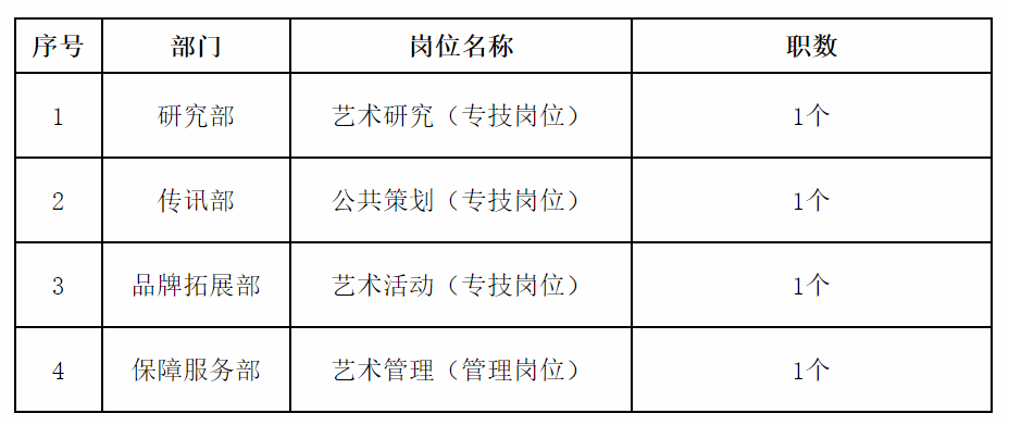 现因业务发展需要,根据《上海市事业单位公开招聘人员办法》(沪人社规〔2019〕15号)文件要求,按照公开、平等、竞争、择优的原则,上海当代艺术博物馆现面向社会公开招聘事业编制工作人员4名,具体如下: