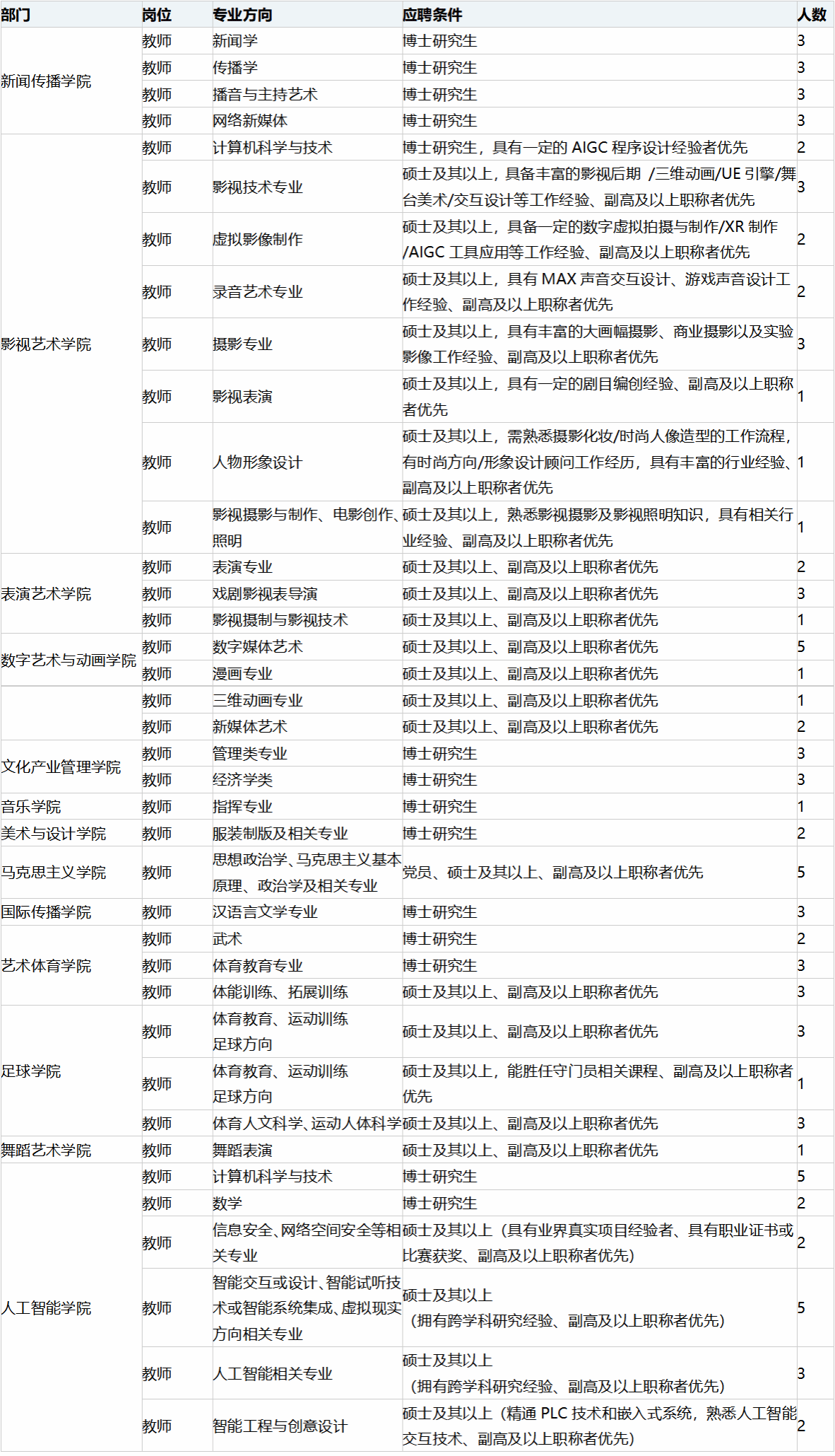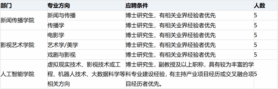4. 符合学校专业建设需要,具备岗位要求的资格条件。
